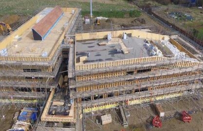 Drone Construction shot 1 Published December 7, 2022 at 417 × 270 in Hackbridge Primary School – The First Passivhaus Plus School in the UK Next →